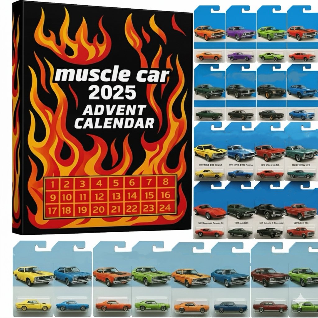 Whether you're gifting it to a muscle car fanatic, a creative kid, or a serious collector, this calendar brings joy, excitement, and a touch of automotive passion to the holiday season.