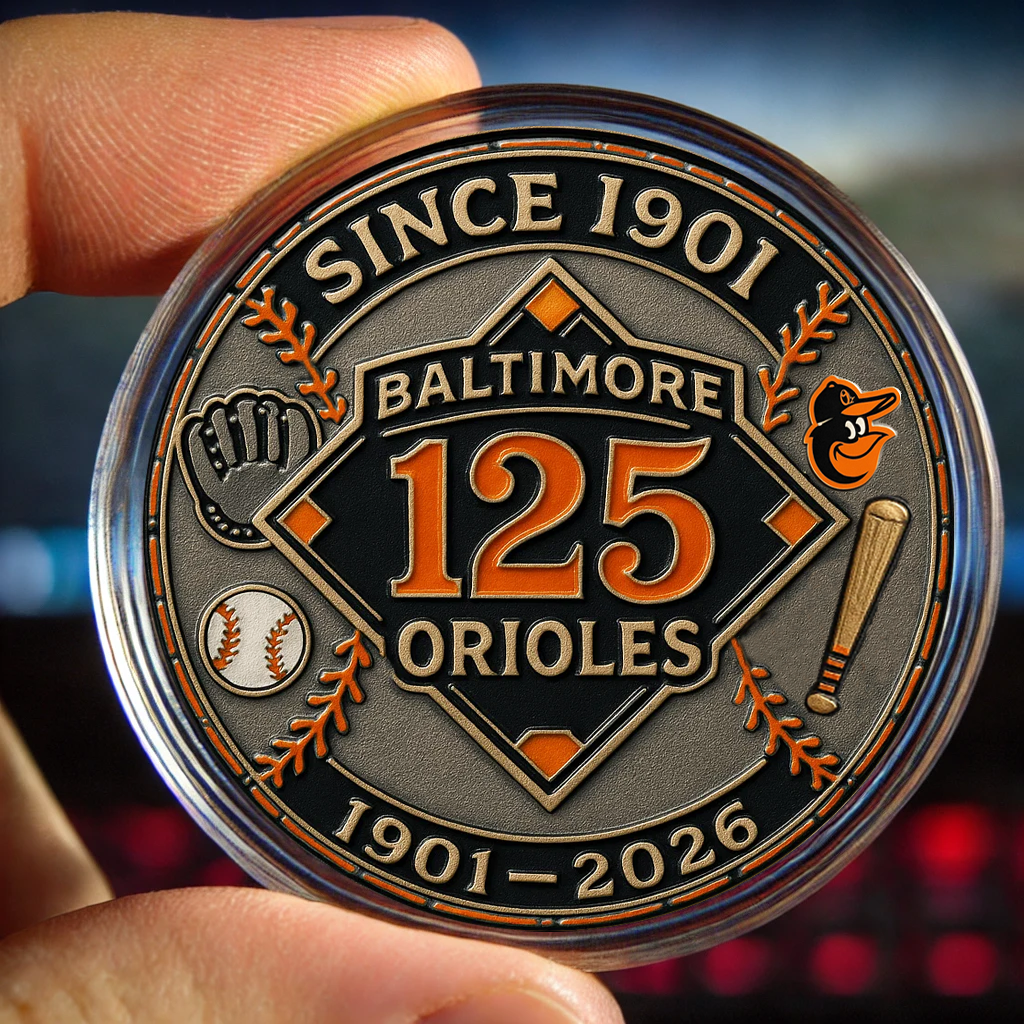 Introducing the Baltimore Orioles 125th Anniversary Commemorative Coin – a stunning tribute to over a century of baseball legacy, tradition, and triumph! 🏟️