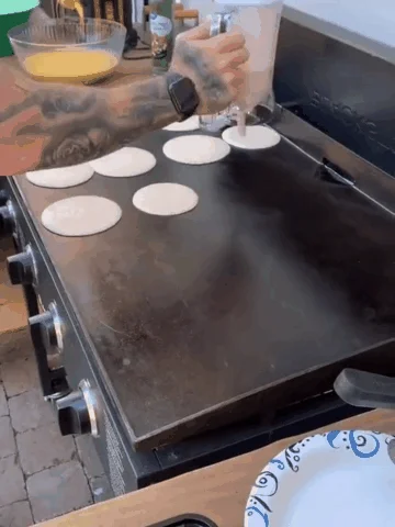 How To Use - The batter dispenser can store the right amount of batter neatly. Simply place the fully mixed batter in the dispenser and Easily distribute the batter and fillings on top of the food!