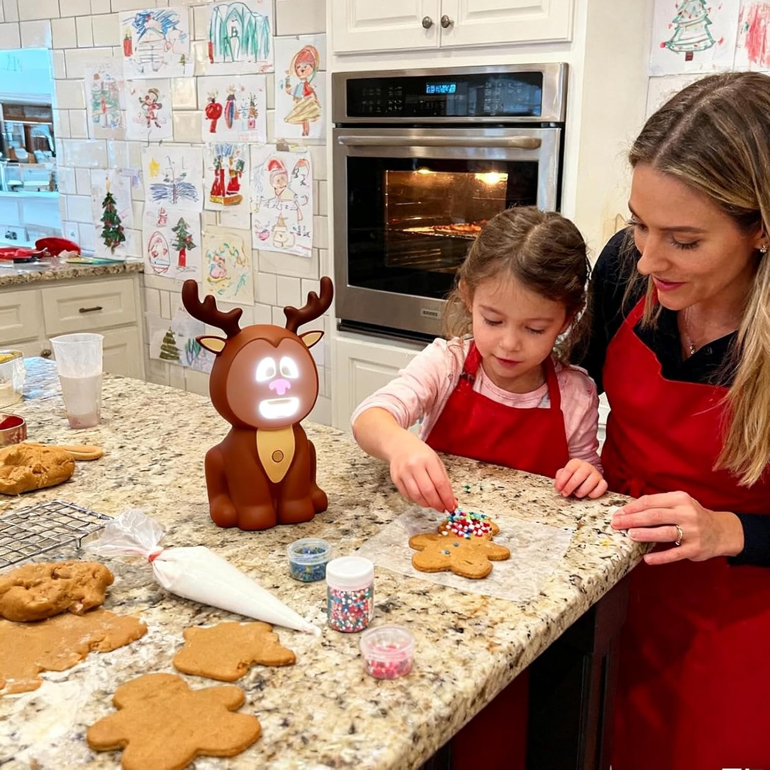 It's not only an adorable decoration but also an interactive companion that combines the functions of a projector, a speaker, and a comedian!No Settings required. Just one click to start a 30-minute singing and dancing talk show, allowing children to sing and dance at the same time. This winter won't be lonely anymore!