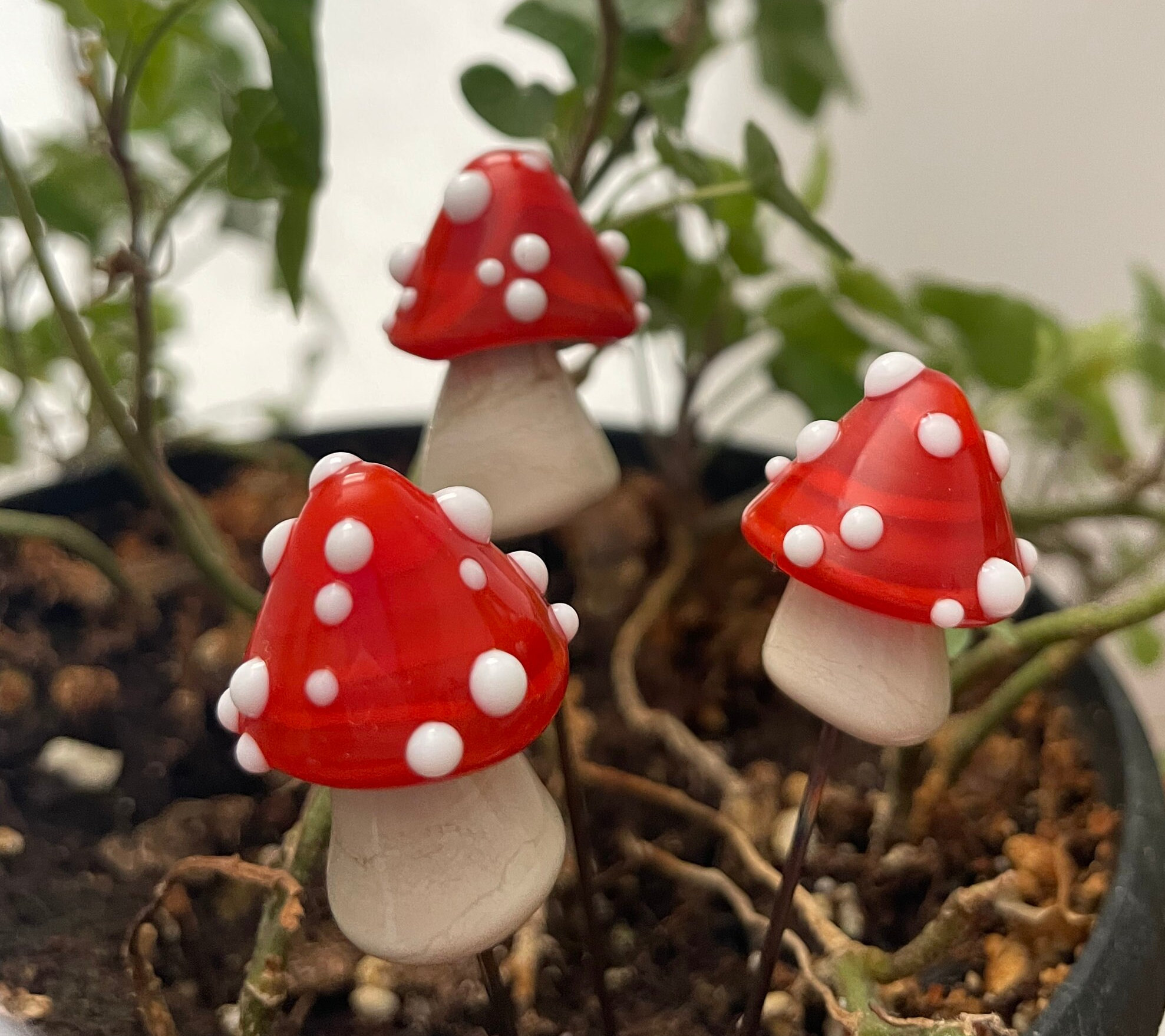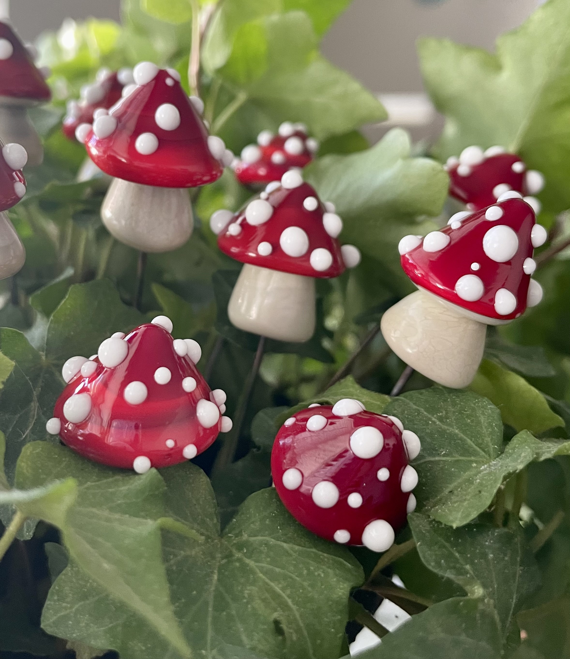 ✨Each mushroom toadstool is unique, with bright red caps with raised white spots and funky beige stems. These glass Mushroom Toadstools have fun, fabulous character and tons of texture just like in nature to make you smile!