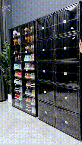 Each storage box features a magnetic clear door made of PET, allowing you to easily view and access your shoes while keeping them dust-free. The magnetic closure ensures a secure seal.