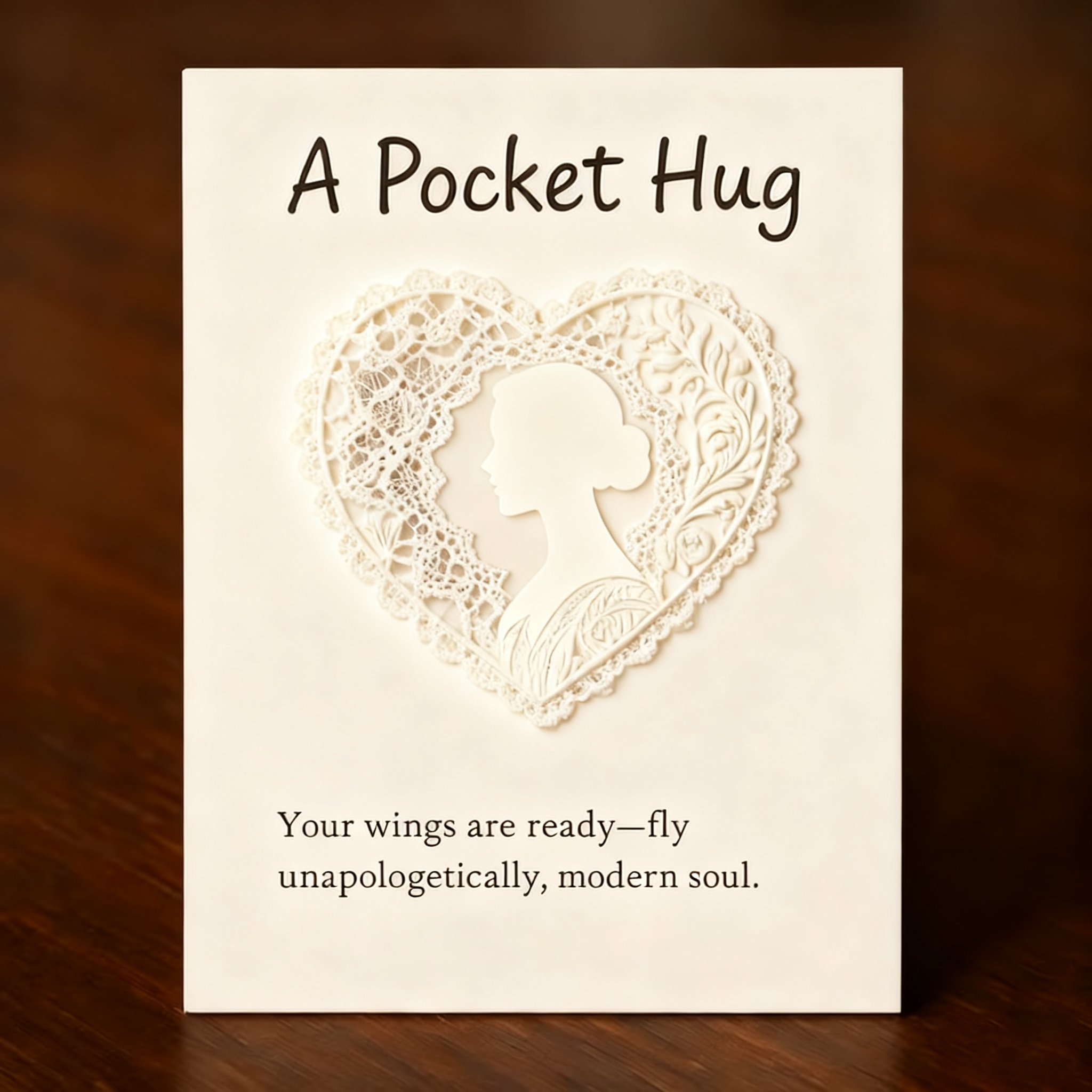 💖 When the weight of the world settles softly upon you, this "Lace-Embraced" Pocket Hug whispers a gentle truth — you are born free, like the wind and the light.