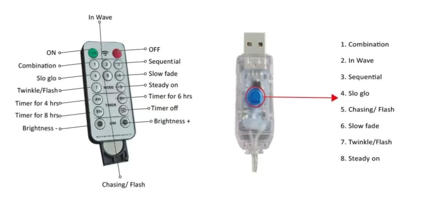 This LED tree branch features a remote control that allows you to switch between 8 different flashing modes: combination, wave, sequence, slow light, chasing/flash, slow fade, twinkle/flash, and steady on. Additionally, it includes a timing function to accommodate your various lighting preferences.