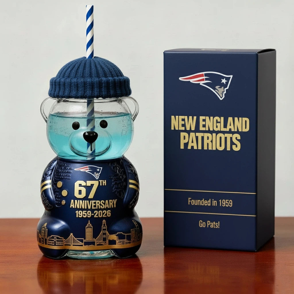 Toast to 67 years of Patriots dominance (1959–2026) with this charming, team-inspired bear glass tumbler – the ultimate blend of Pats pride and everyday fun! Designed for die-hard New England fans, this limited-edition piece packs iconic team details, regional flair, and practicality into one adorable package.