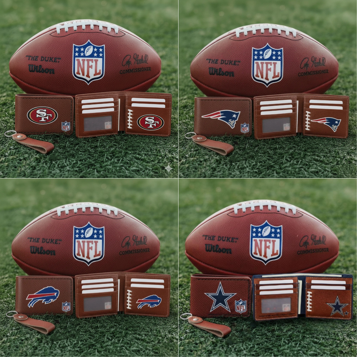 Get a custom handmade wallet made from an Official "The Duke" NFL Gameball with your favorite team's logo,