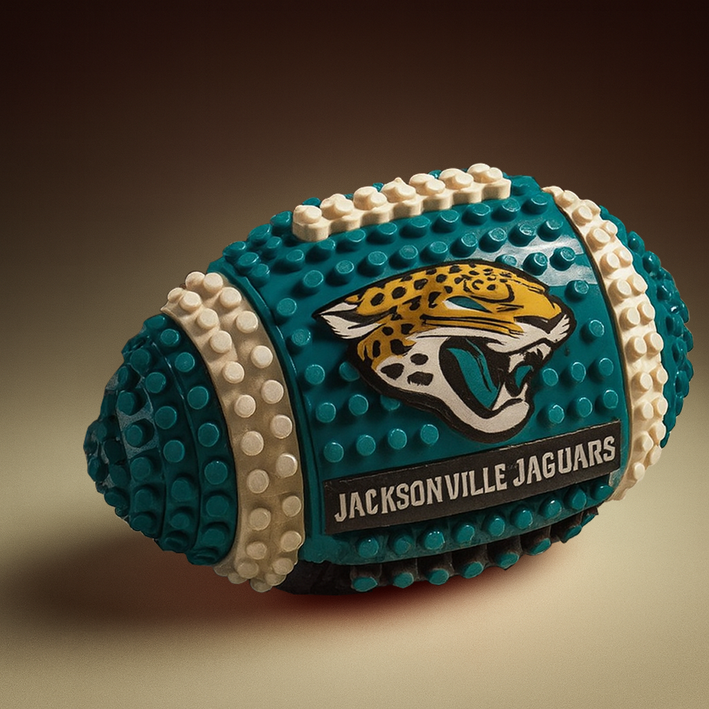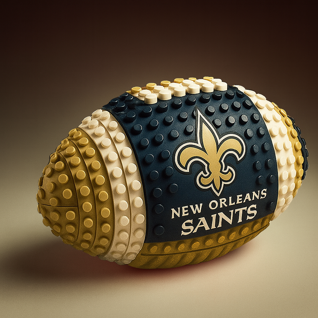 Score big with this one-of-a-kind football set crafted entirely from colorful interlocking bricks. Inspired by your favorite NFL team, this 3D model features bold team colors, logos, and name detailing that fans will instantly recognize and love.