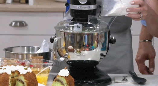 The integrated pouring shield fits onto the mixing bowl to help you add ingredients without making a mess. It also prevents lightweight ingredients like flour from flying out of the bowl while mixing.