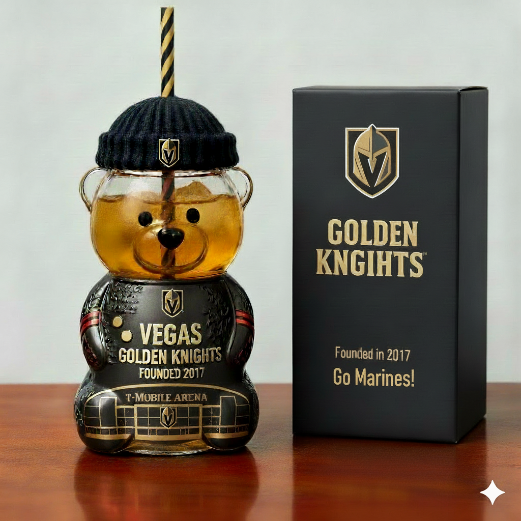 This limited-edition Bear Bottle captures the excitement and energy of the Vegas Golden Knights! Whether you’re watching the game or displaying it proudly on your shelf, it’s the perfect tribute to the team’s incredible rise since 2017. Don’t miss out on this exclusive collectible — get yours today and show your Golden Knights pride!