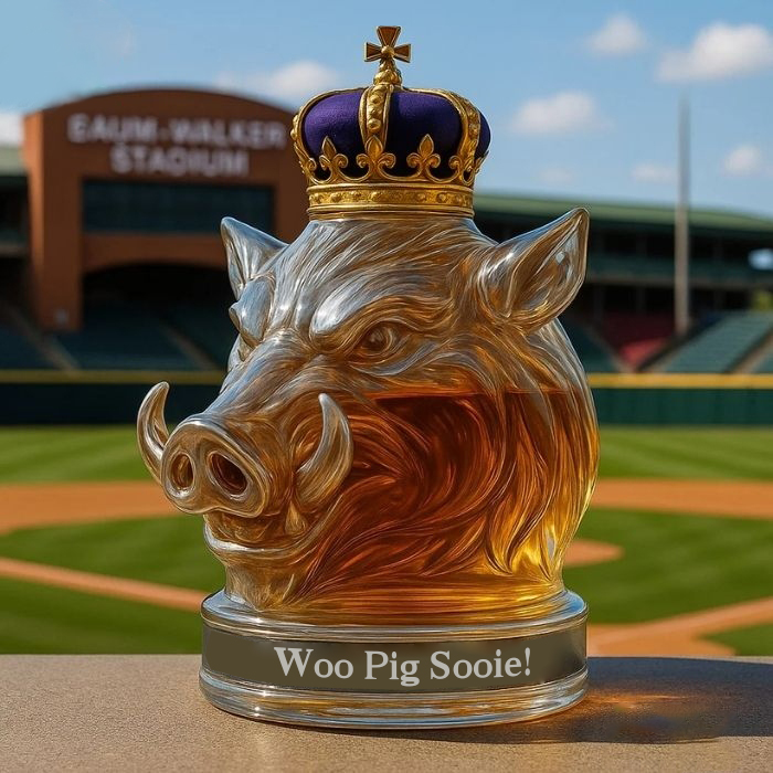 🐗Let your group spirit go wild with this Razorbacks Wild Boar Whiskey Bottle that recreates the mascot of the Arkansas Razorbacks to impeccable detail! 🙌This container includes a highly detailed wild boar head that is carved into glass even down to the tusks on the boar and each and every bristle.