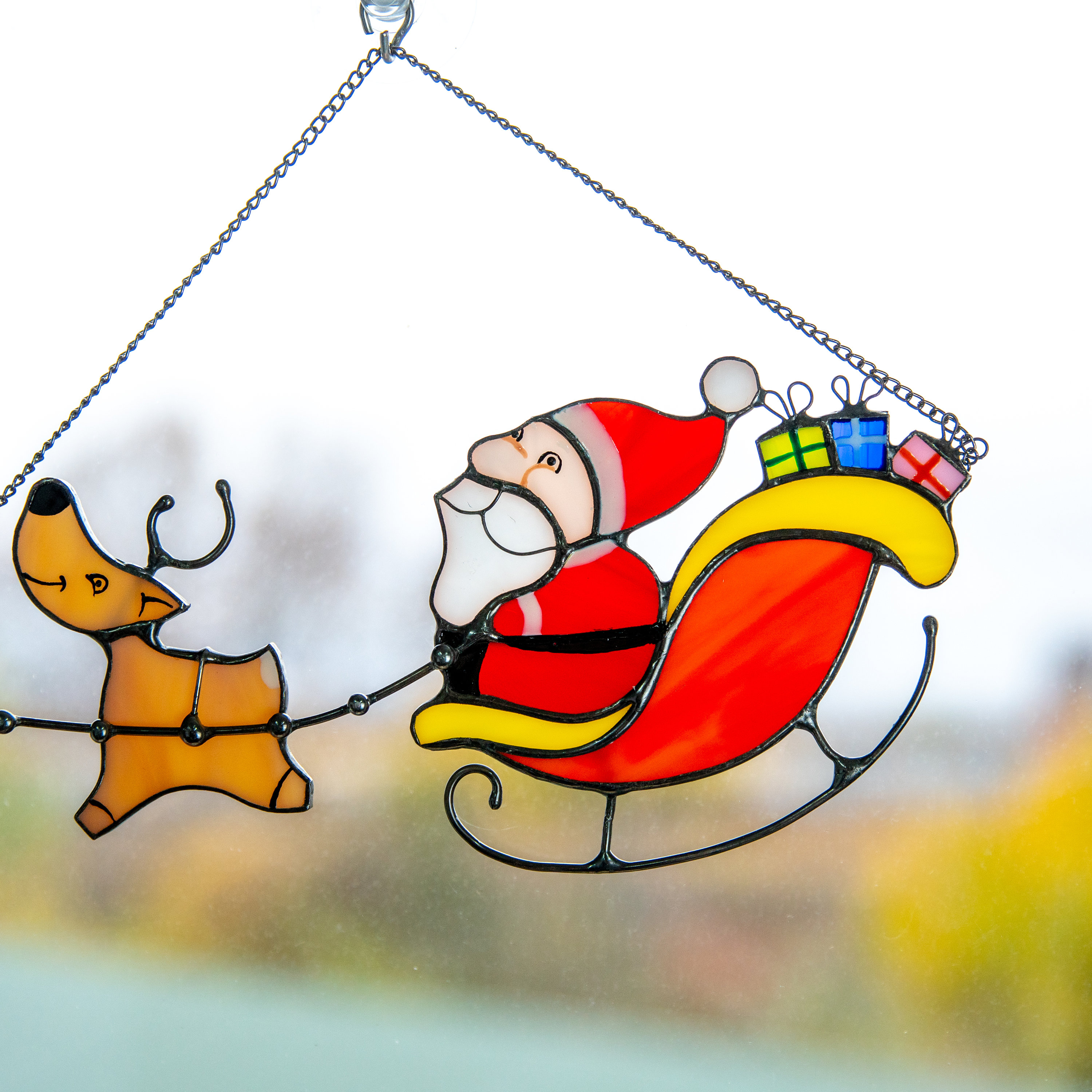 Santa Claus suncatcher is an essential item of home decor in winter! Moreover, this is one of the main symbols on the most loved holidays - Christmas and New Year! Such window hanging will warm up your soul on cold winter days!