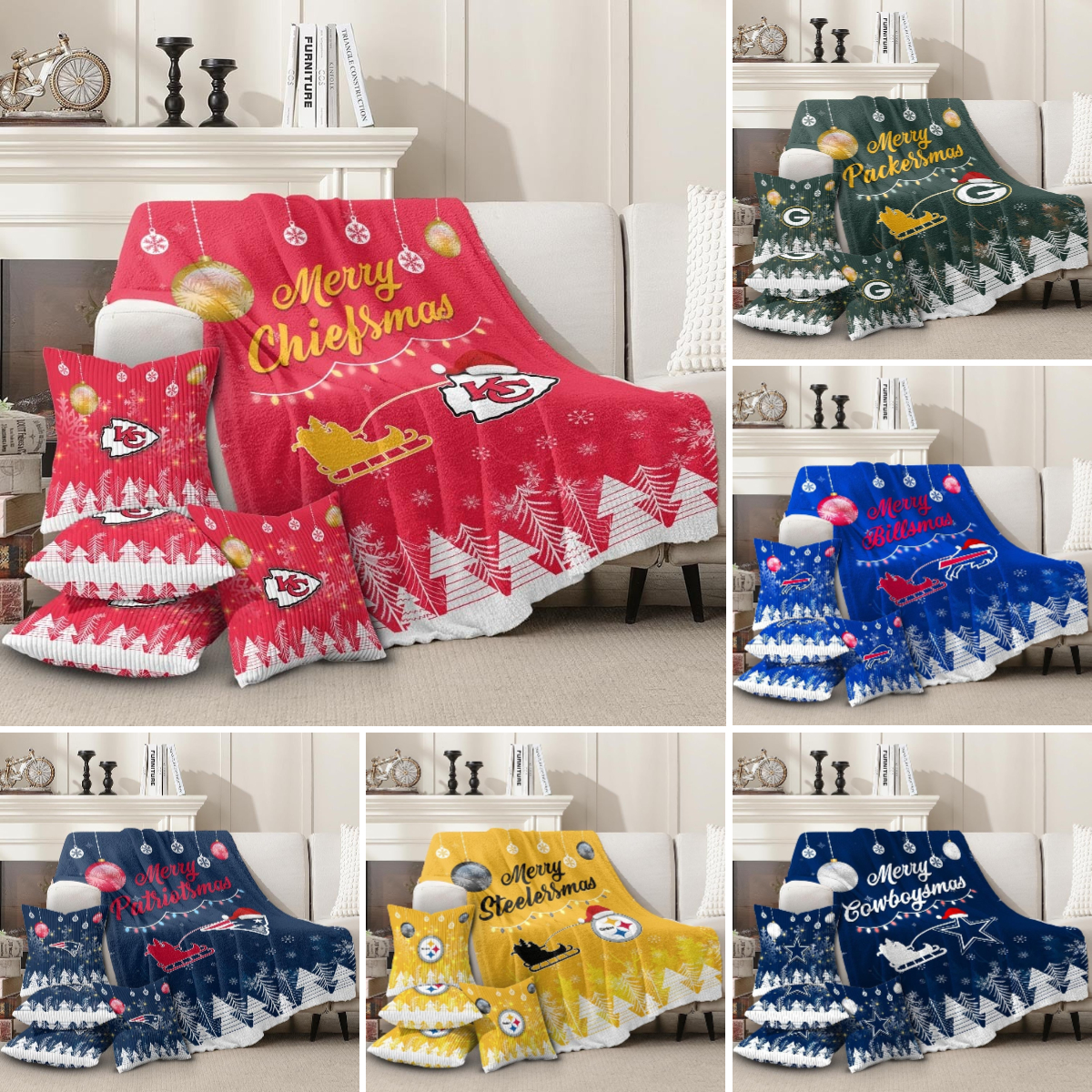 🏈 NFL Team Christmas Blanket & Pillowcase Set – Cozy Up with Team Spirit! 🎄